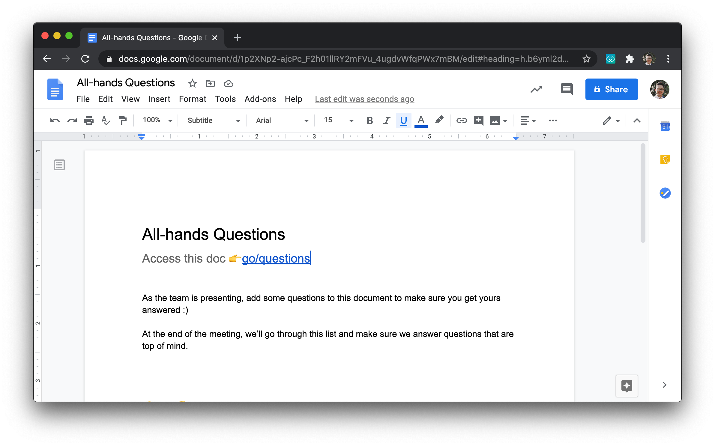 Golinks, which are short, easy to remember links for people within the same company, are really helpful when applied to Google Docs for numerous reasons: